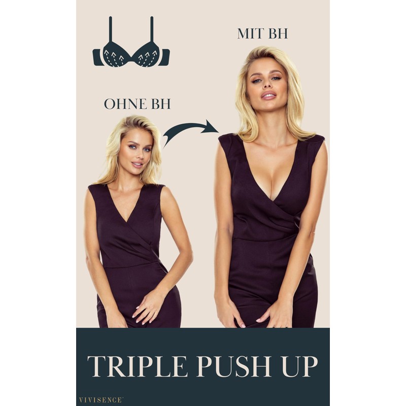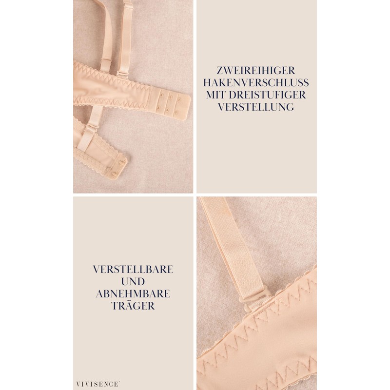 VIVISENCE 1041 Women's Bra with Underwire Padded Push-Up Bra Classic Smooth Microfibre Elegant Lace Mesh, beige, 70B