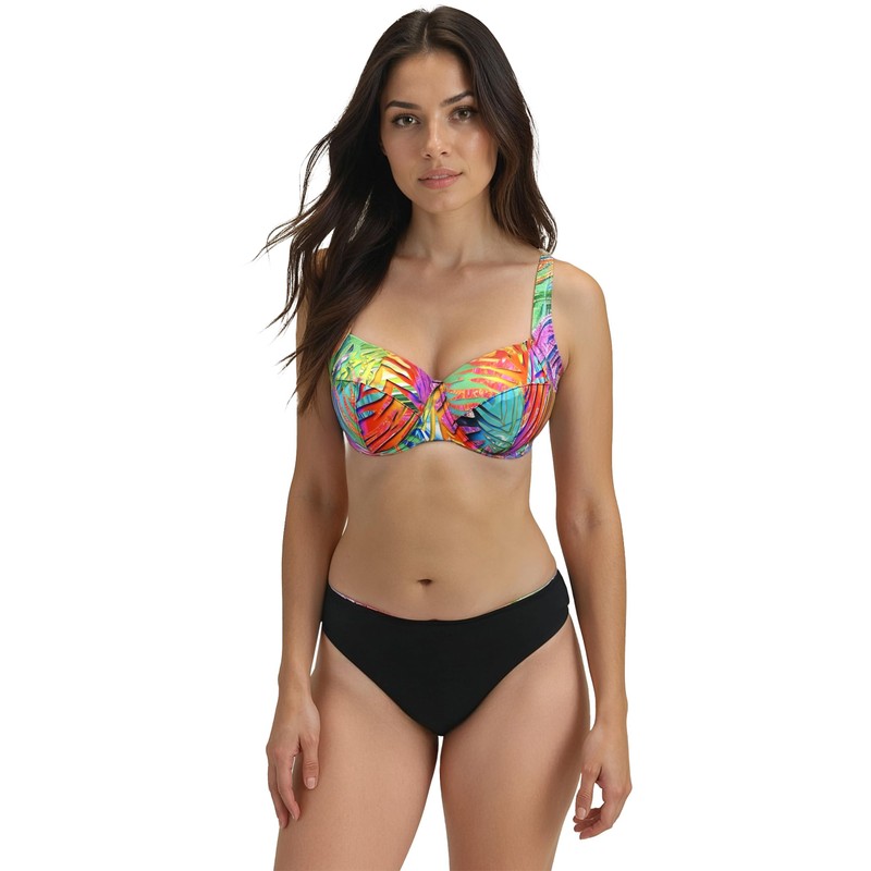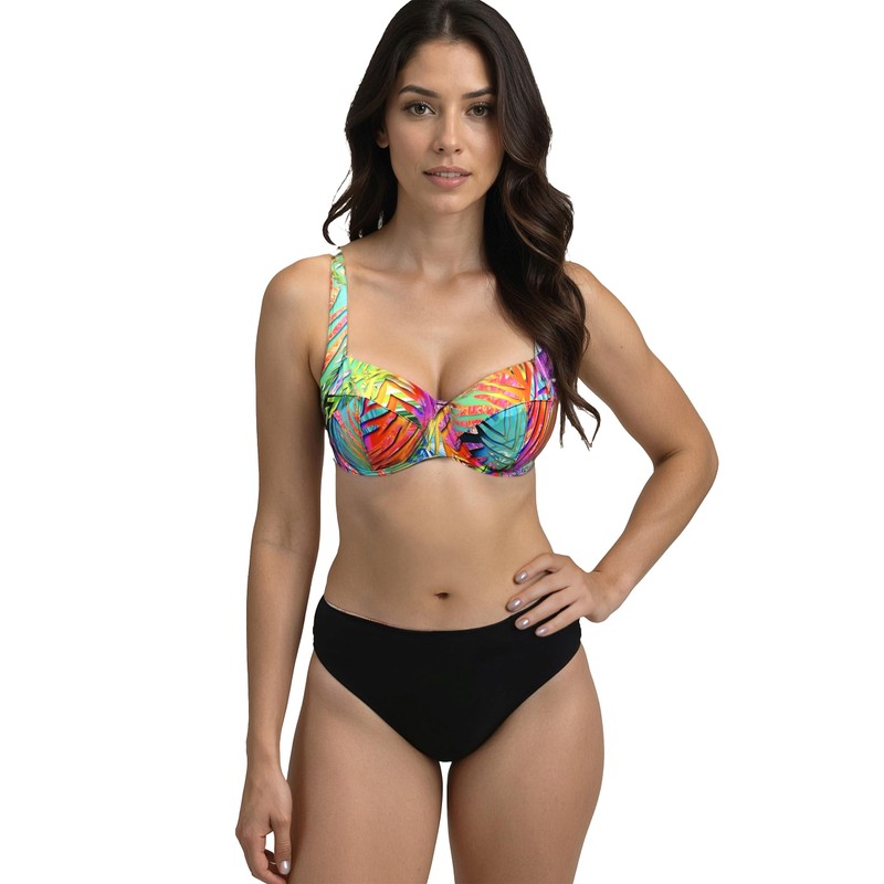 VIVISENCE Bikini Top Padded with Underwire Click Closure Tropical Pattern for Women Holiday, Orange-Green, 90C