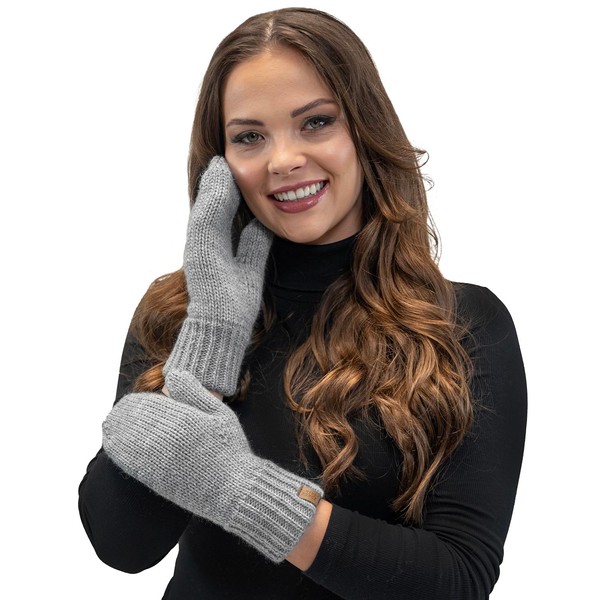 Vivisence Stylish Women's Mittens Made Of Warm And Soft Yarn With Elegant Ribbed Cuff Design Ideal For Stylish Outfits Perfect Gloves For Cold Winter And Autumn Weather, Light Grey,UNI