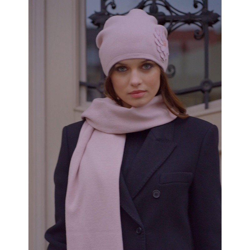 Trendy set for women: winter hat and scarf.