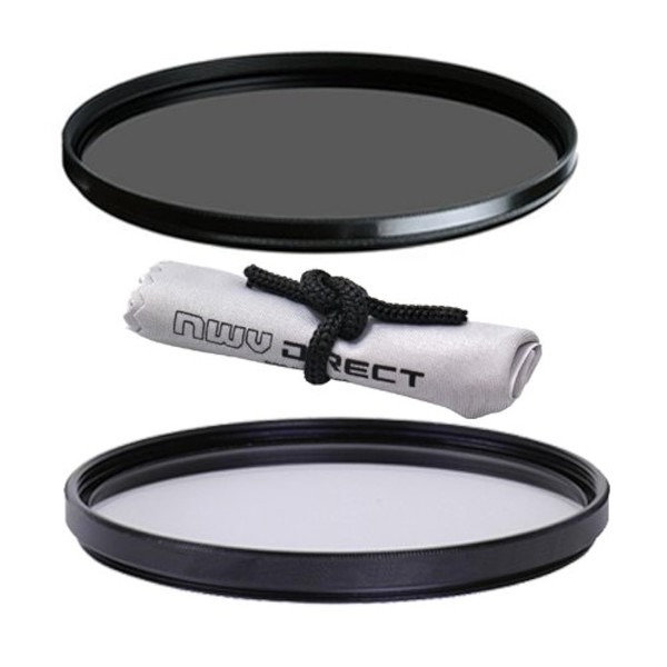 Vivitar High Grade 58mm UV (Skylight 1A) Filter, Vivitar High Grade 58mm Circular Polarizing Filter, & Nwv Direct Microfiber Cleaning Cloth.