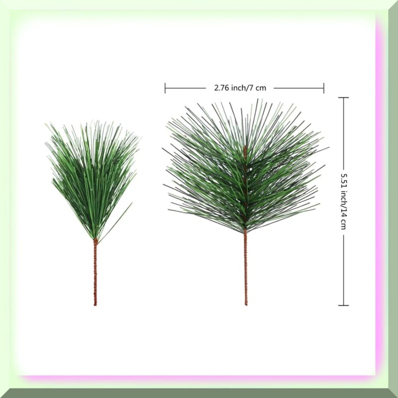 - 1. 20 PCS of High-Quality Artificial Pine Branches: Made from durable plastic leaves and wire, these stunning green pine needles and small twigs are perfect for all your DIY projects. 2. Versatile Size: Measuring at 2.75 inches x 5.9 inches, these pine branches are the ideal size for flower arrangements, wreaths, and holiday decor. 3. Endless Creativity: Let your imagination run wild as you create beautiful pine wreaths, red berry garlands, rustic wreaths, and more! These branches are also great for photography props, sketch props, and stage decorations. 4. Natural Beauty for Any Occasion: Add a touch of elegance to your crafts, cake toppers, wedding favors, and any event that requires a stunning prop. These artificial pine stems will make your creations truly stand out.