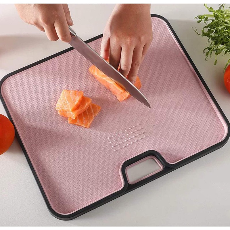 VIVLLEN Double-Sided Plastic Chopping Board, Cutting Board with Hanging Hole Best for Meat, Vegetables and Cheese. Professional Easy-Grip Handles(Pink)