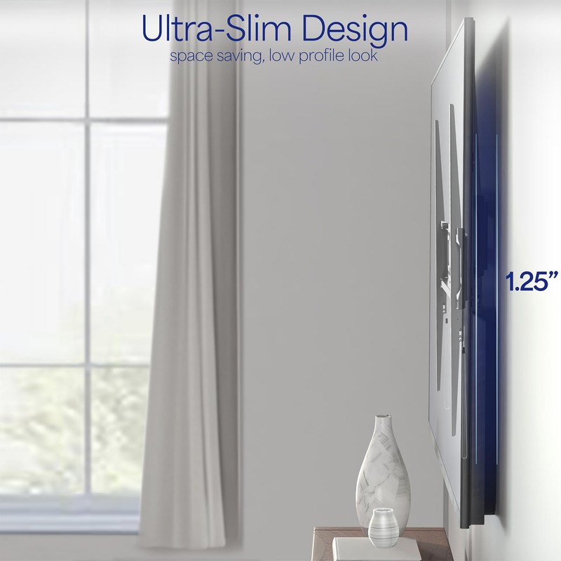 - Design - Open architecture provides superior ventilation and easy access for A/V and power chords while keeping a low profile, fitting large flat screen just 1.25" from the wall