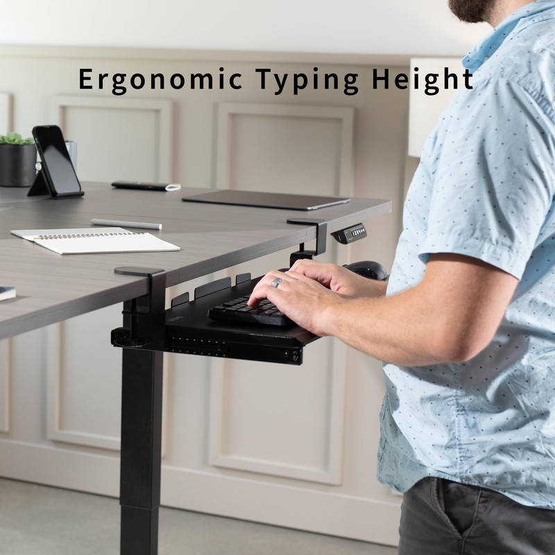 • Comfortable Typing Angles - Easily slide the tray in and out and enjoy ergonomic typing angles that relieve stress on your wrists and shoulders. The tray extends a maximum of 8.5” from the edge of your desk.
