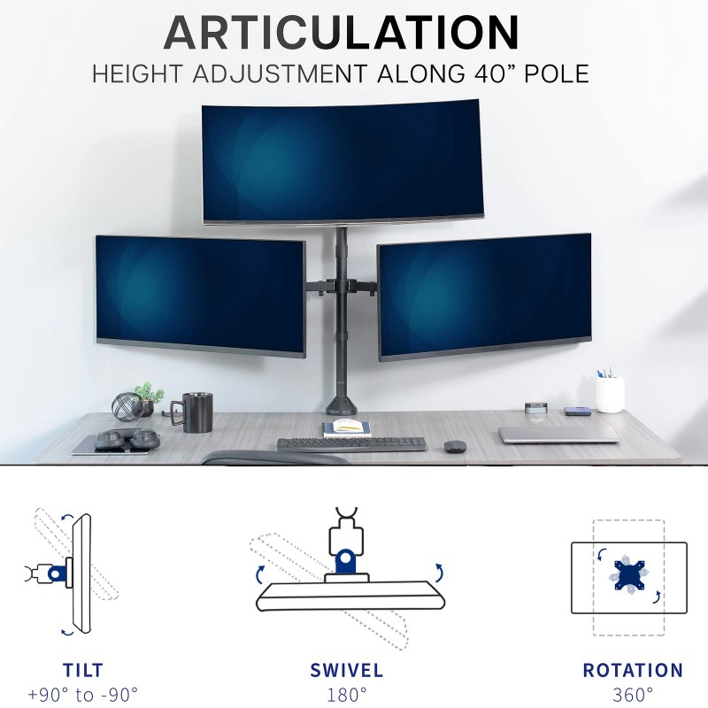 VIVO Telescoping Extra Tall Triple Ultrawide 27" to 38" Monitor Desk Mount