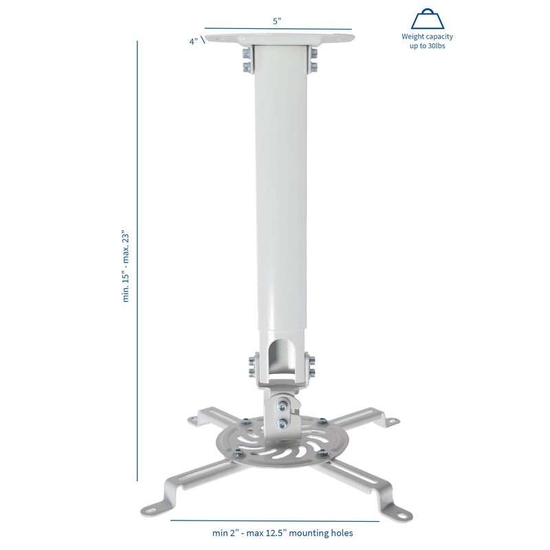 - Telescoping Height Adjustment mounting system extends your projector from 15” to 23” from the ceiling surface