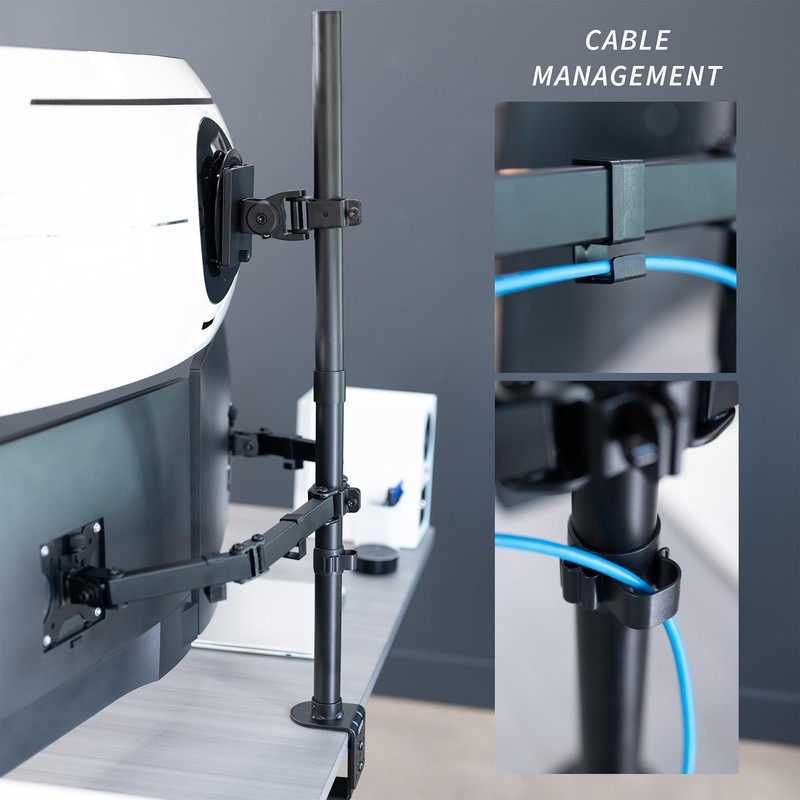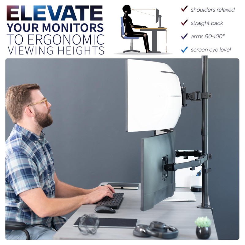 - Heavy-Duty Steel Construction: Clamp base (fits desktops up to 3.4 thick) and arms are made of steel for maximum strength, scratch resistance, and durability. High-capacity center tilt joint accommodates heavier screens without sagging