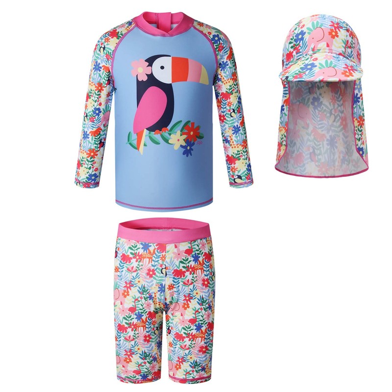 Vivobiniya Kids Swimsuits Toddler Girl Two-Piece Swimsuits with Sun Hats UPF 50+uv (14(53.1-57in Height), Blue)