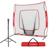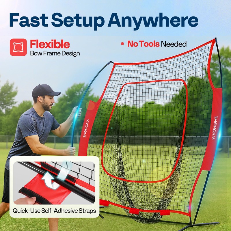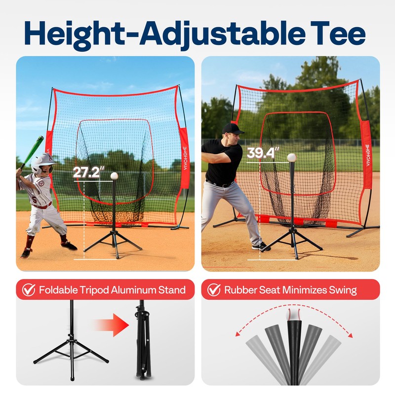 VIVOHOME Baseball Softball Batting Net - 7x7 Ft Baseball Backstop, Softball Practice Net for Hitting, Pitching, Throwing with Batting Tee and Carry Bag, Red