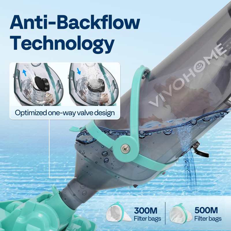 VIVOHOME Cordless Pool Vacuum with Telescopic Pole, Powerful Suction up to 18.5 GPM, 60 Mins Running Time, Handheld Rechargeable Swimming Pool Cleaner for Pools/Spas/Hot Tubs - Green