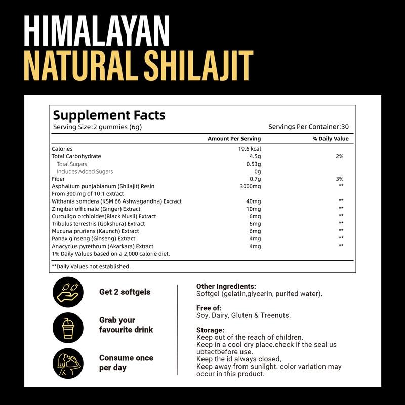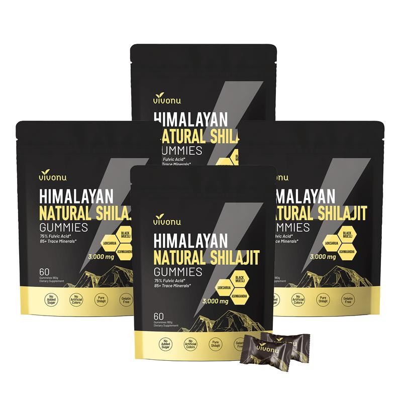 VivoNU Himalayan Shilajit Gummies | With Ashwagandha, Gokshura & other herbs | No added sugar | 60 Gummies:_Pack of 4