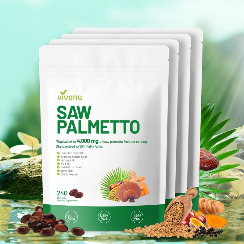 VivoNu Saw Palmetto Extract 8 in 1, Pumpkin Seed Oil - Supports Prostate Health, Relieves Urination Issues, Supports Hair Growth, DHT Blocker 240 Softgels
