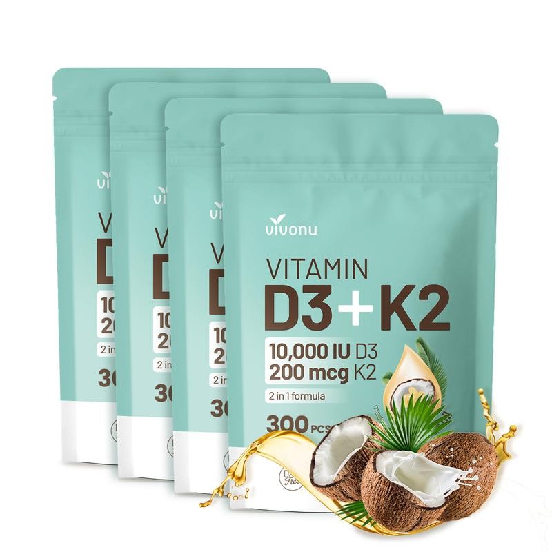 VivoNu Vitamin D3 K2 Supplement Softgels | Natural Nutritional Supplements | Enhanced Energy & Health Support | Potent Botanical Formula, 300 Capsules Dietary Healthcare - Specification: Pack of 4