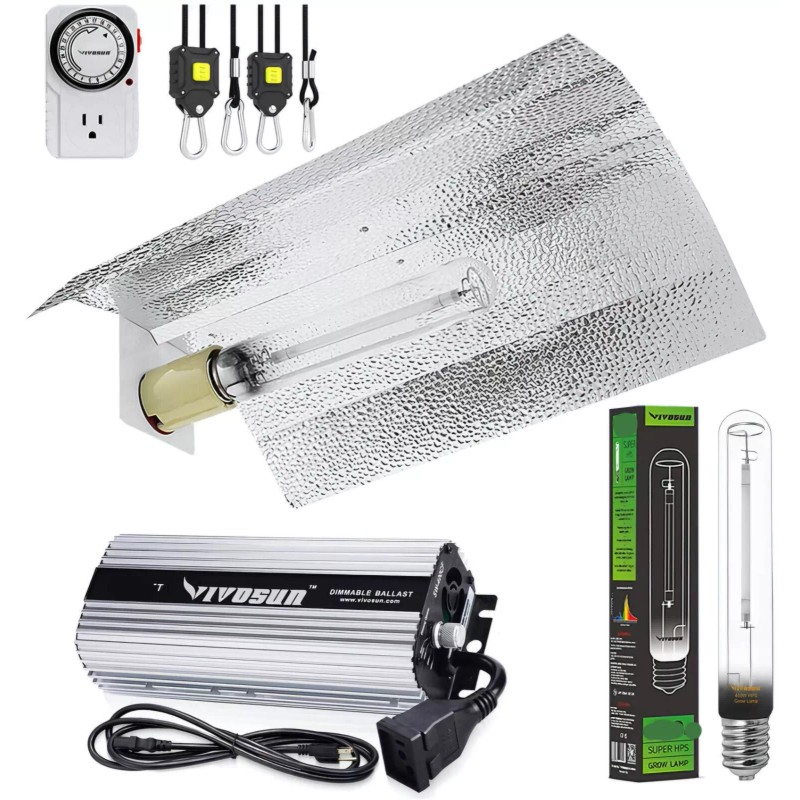 Vivosun 1000 Watt HPS Dimmable Grow Light System Kit Reflector Bulbs Timer New
