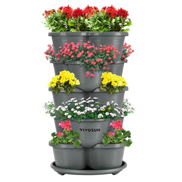 VIVOSUN 5 Tier Vertical Gardening Stackable Planter for Strawberries, Flowers, Herbs, Vegetables, Grey