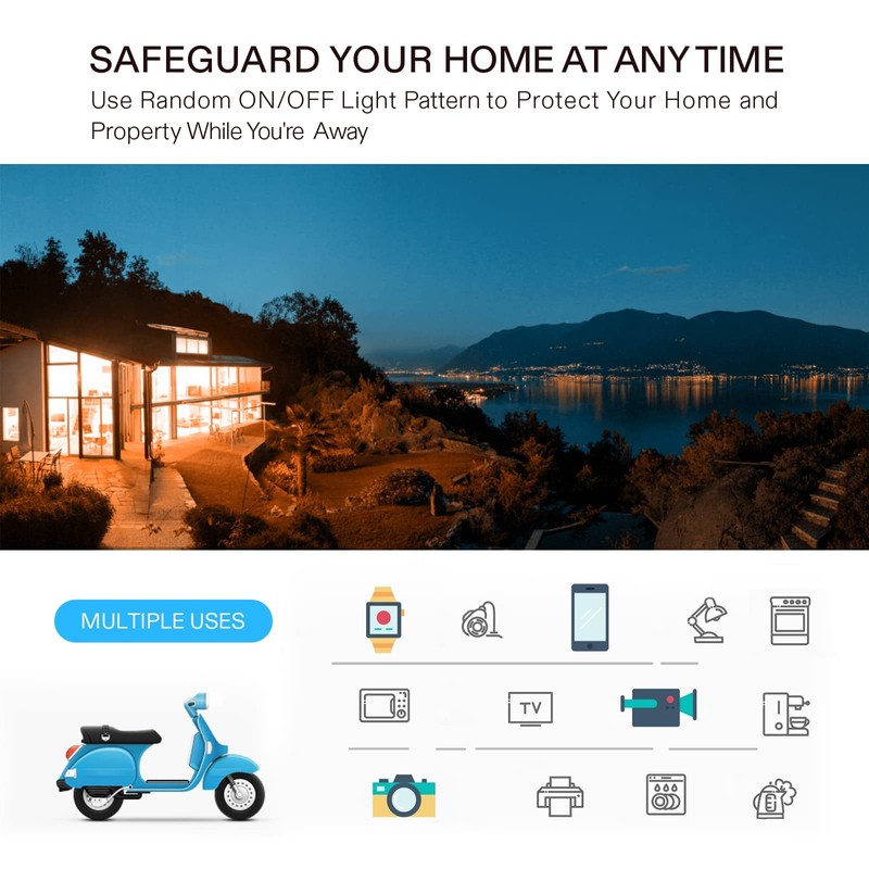 - Save Time and Energy: Plug and play, automate your house and office; Three-prong grounded is easy to operate and dual outlet allows you to control 2 different devices simultaneously; Great for light, fan, coffee machine, hydroponic, watering and so on