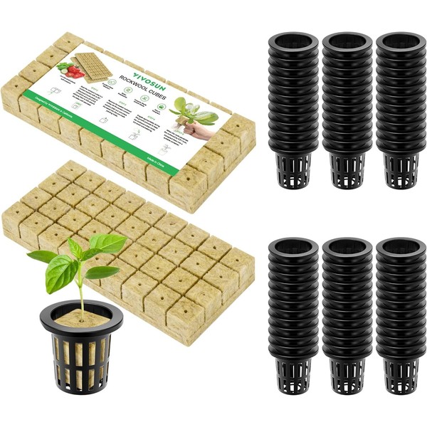 VIVOSUN 72 Plugs 1" Rockwool Cubes for Hydroponics w/ 72 Pack 2" Net Pots