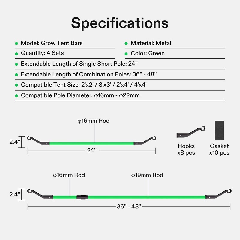 VIVOSUN Grow Tent High CFM Kit, Green Pole Range of 24"-48", Suitable for 2'x2', 3'x3', 4'x2' and 4'x4'Grow Tent, 4-Pack