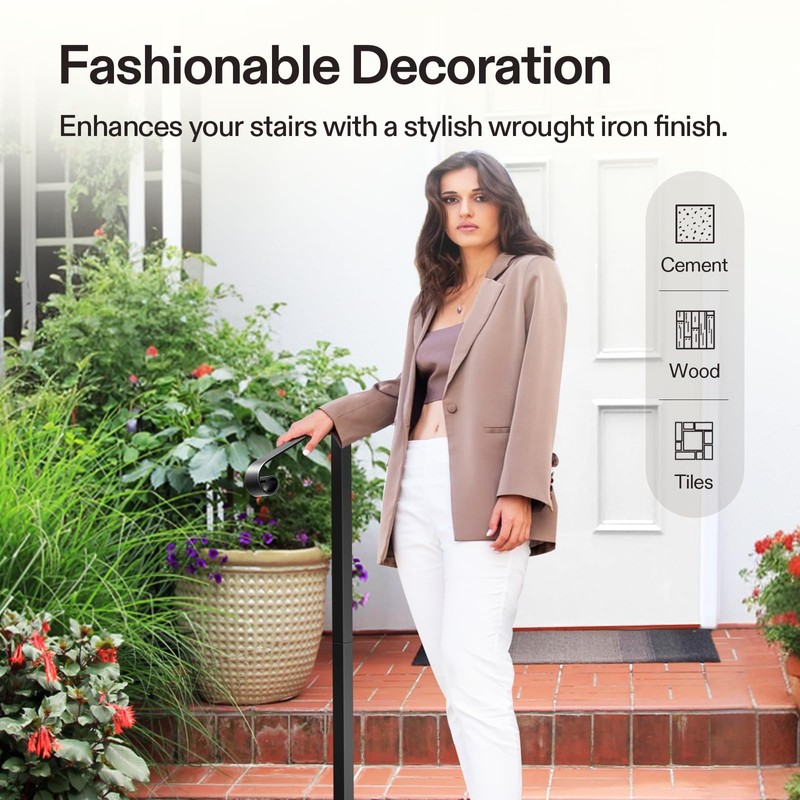 - Sturdy & Durable: Made of premium iron for stability and durability, this handrail can withstand harsh weather conditions, including rain and snow