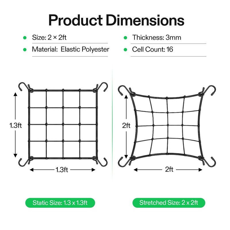 VIVOSUN VIVOSUN 2 x 2Ft. Elastic Trellis Netting with 4 Hooks for Climbing Plants, Vegetables, Fruits, and Flowers, 1-Pack