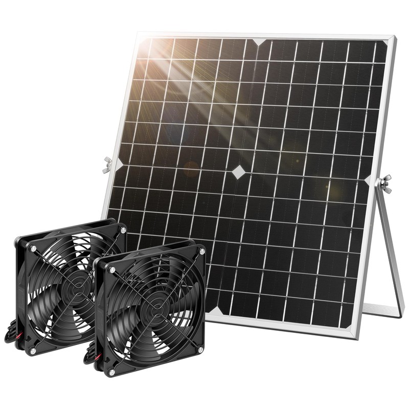 - Waterproof & Rustproof: Constructed of heavy-duty aluminum housing, the solar panel features a sturdy, rustproof frame with an IP67 waterproof rating, making it suitable for outdoor use; Each fan features dual protective metal nets to prevent debris from entering the interior, ensuring safe, long-lasting operation