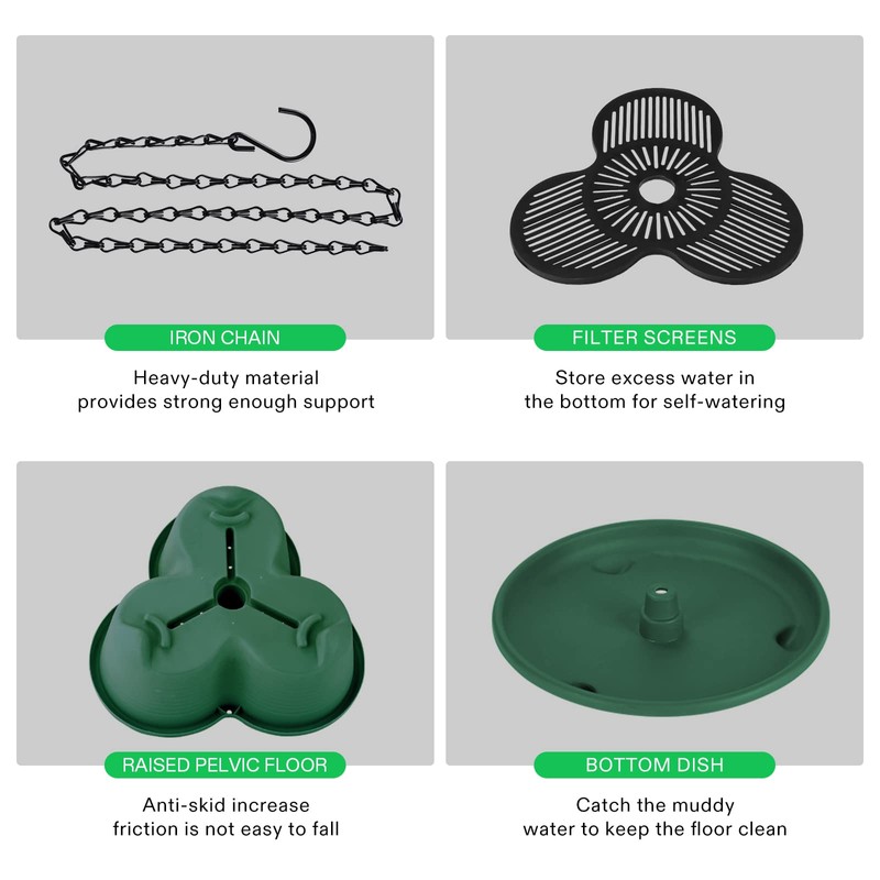 - Different Combinations: You can stack 2 or 3 or 4 tier; This planter can be hang with chains or used on a cylindrical rod