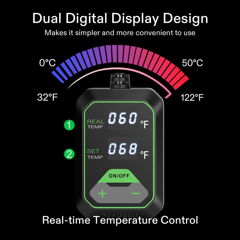- Heat Mat Feature 2: This thermostat comes with a adjustment function allows users to set the desired temperature according to the needs of their plantsit's simple and convenient to use; It also receives data from the internal sensor chip and displays the temperature of the heating pad in real-time