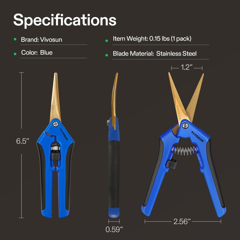 - Make Precise Cuts: With these micro tip snips, you can easily get between plants to "clip and snip" only the area or part that you want to cut with one-hand, while not damaging the other vital stems and branches of your other plants; Note: The blue shears have curved blades; Clean blades after each use