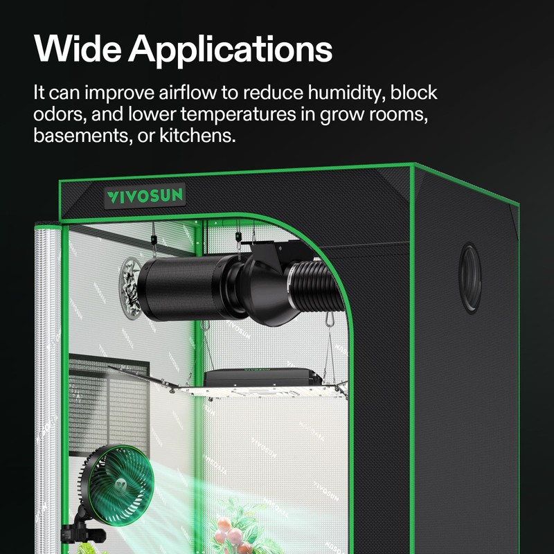 - Wide Applications: It can improve airflow to reduce humidity, block odors, and lower temperatures in grow rooms, basements, or kitchens