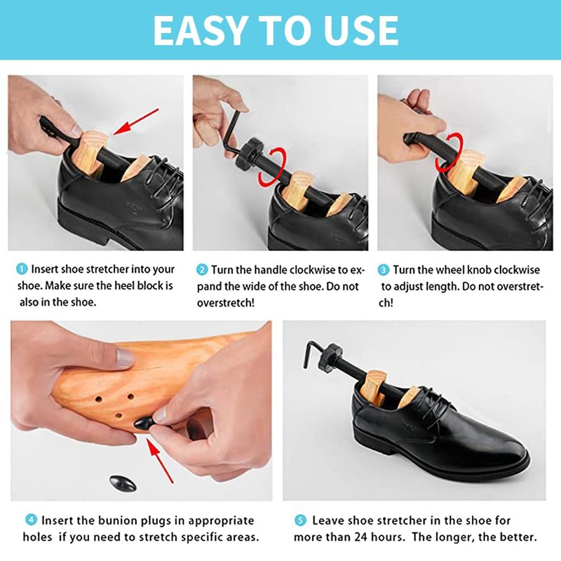 - Easy to Use: Simply insert the shoe stretcher into your footwear, twist the knob, and let it work overnight or for 24–48 hours. This universal shoe expander fits both left and right shoes — no need for separate shoe stretchers. Designed for effortless use by everyone, including those looking for a shoe stretcher men prefer or a unisex shoe stretcher.