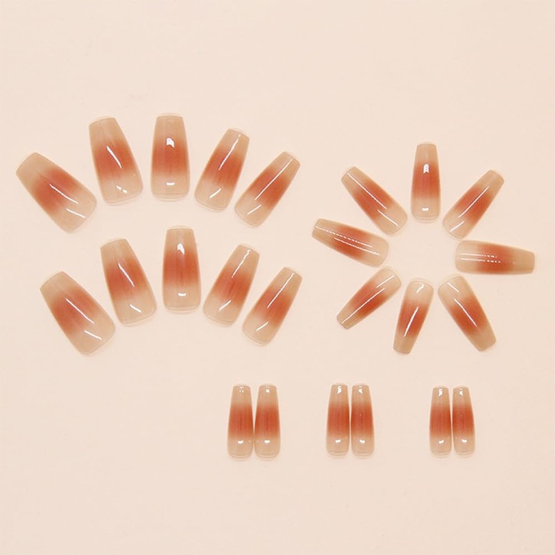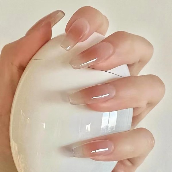 Viwind Medium Square Press on Nails,Ombre Coffin Fake Nails Kits with Glue,Natural Reusable Stick On Nails in 12 Sizes-24 Stick On Artificial Nails-Gradient Nude