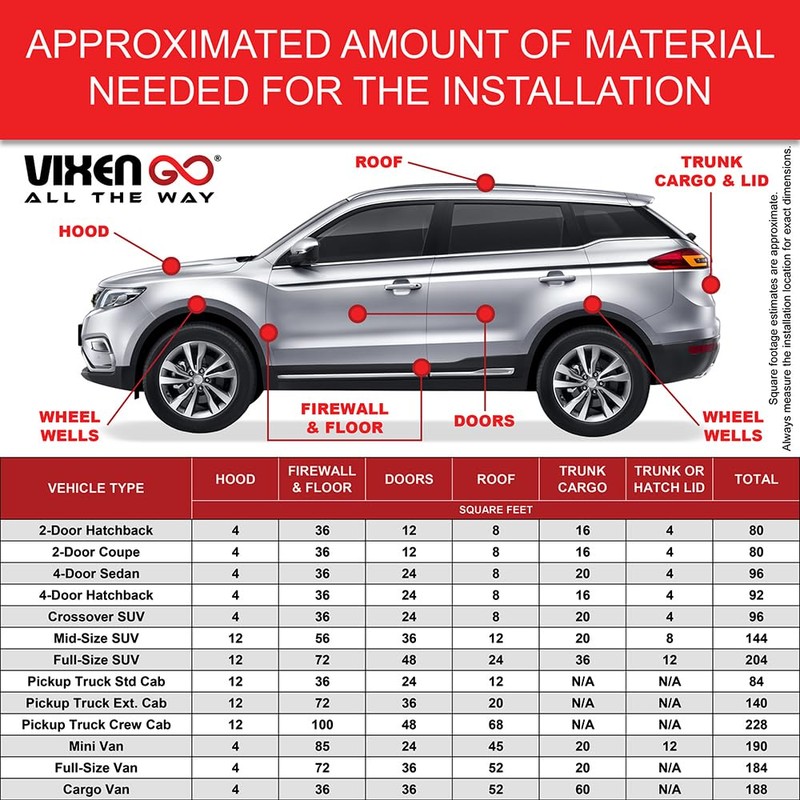 Vixen Go Sound Deadener for Cars 80 mil, 10.8 sqft - Butyl Rubber Auto Insulation & Dampening Mat, Audio & Noise Deadening Material for Automotive Trunk, Door, Floor & Ceiling (4 Sheet+2 Rollers Pack)