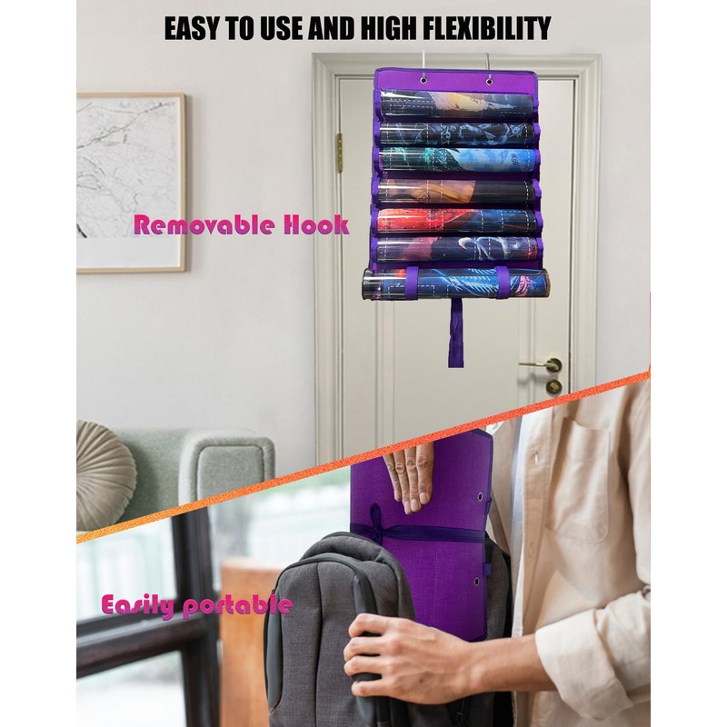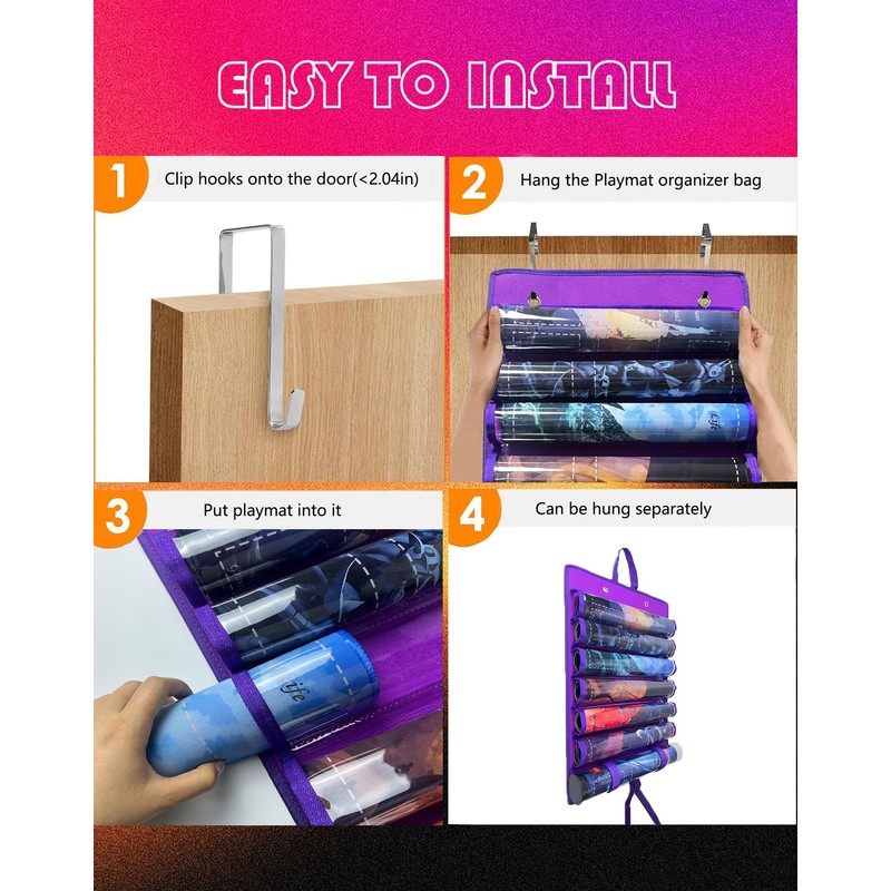 - Extra-Large Capacity Design: Easily stores 6 game mats and 1 game mat tube, meeting the needs of multiple gaming scenarios. The play mat holder fits most standard game mats with diameters up to 2.75in, including popular 2.55in playmat tube. It’s perfectly sized for one-player mats, A must-have for any CCG or TCG player seeking an organized collection of play mats.