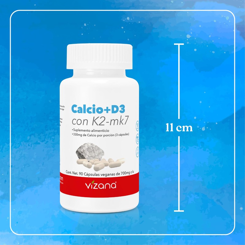 VIZANA NUTRITION | Citrato de Calcio en Cápsulas HPMC Vegetarianas (90 Caps-700 mg), adicionado con Vitamina D3 y Vitamina K2-mk7