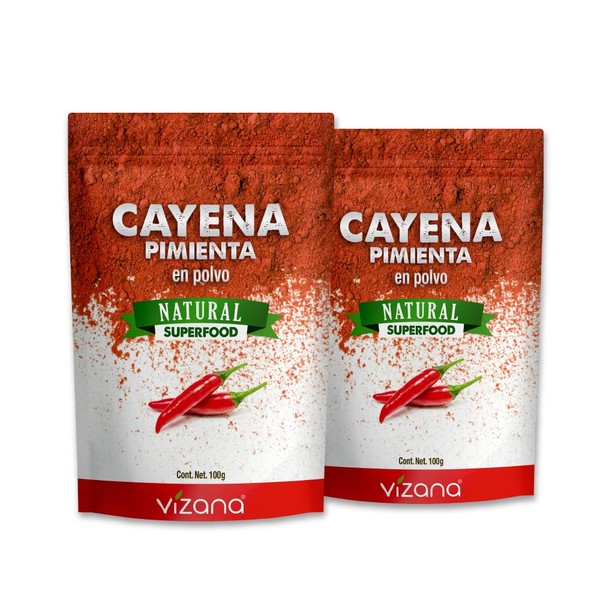 VIZANA NUTRITION | Pimienta de Cayena Natural en Polvo 200g por Pack (Pack-2 Bolsas de 100g)