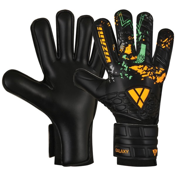 Vizari Kids Training Goalkeeper Gloves - Youth Soccer Goalie Gloves with Finger Protection & Grip (Black/Orange, 10)