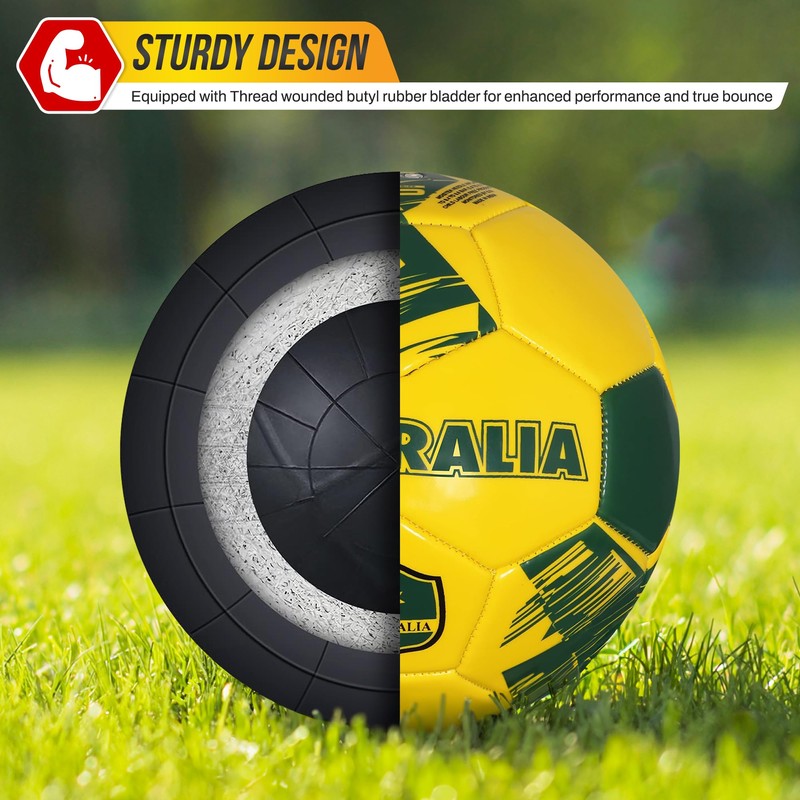 Vizari New Country Series National Team Soccer Ball - Australia Yellow, Size 5| Durable Soft & Spongy Synthetic & Rubber Ball | Perfect for Outdoor Training, Fun Play, Matches & Beaches