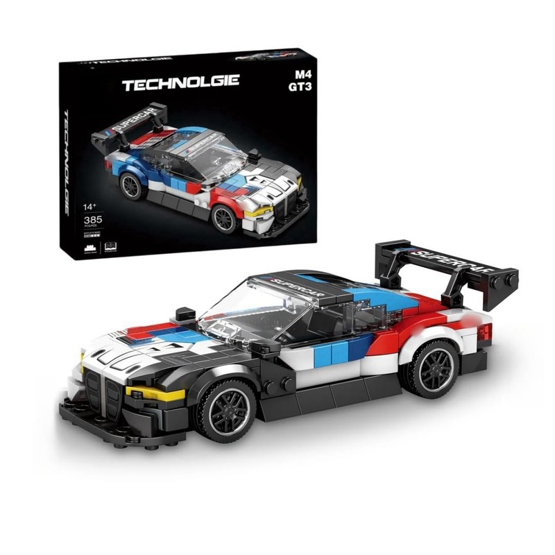 VizBrou Racing Car Speed Champion Building Blocks Set, BMWW M4GT3 Sports Car Clamping Building Blocks Model Kit, 385 Pieces Compatible with LG Super Car Kit Model Toy Gift Decor for Adults Children