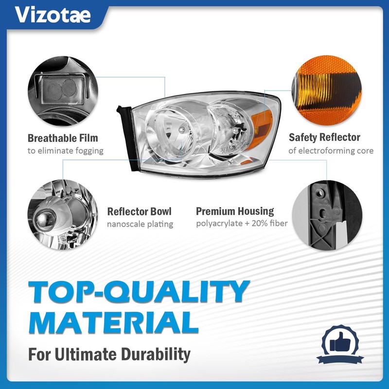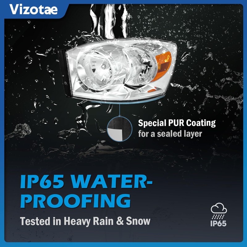 Vizotae Headlights Assembly for 2006-2008 Dodge Ram 1500/2500/3500 Halogen He...