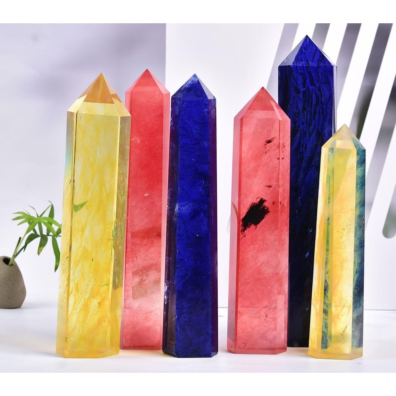- Size: 1pc artificial man-made healing crystal wand polished by hand, 1.8-2.2 LBS weight, 6 faceted reiki crsytal wand not a standard hexagon. The actual size and color are a bit different from each other, we will send by random from available lot. Pls allow slight flaw or crack as a natural product.