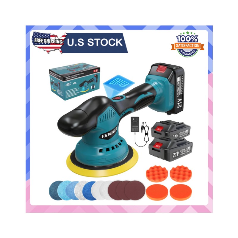 Vkdemer Cordless 6" Car Buffer, 21V Batteries, 6-Speed 5500RPM Polisher