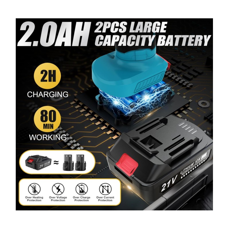 🚔🚔2PCS 21V POWERFUL BATTERY- With 2 packs 21V 2000mAh batteries, Vkdemer cordless buffer polisher provides more powerful performance and long battery life than common 12V batteries. And equipped with a fast charger for fast charging. Use two batteries alternately, no need to worry about running out of battery power, say no to battery anxiety!