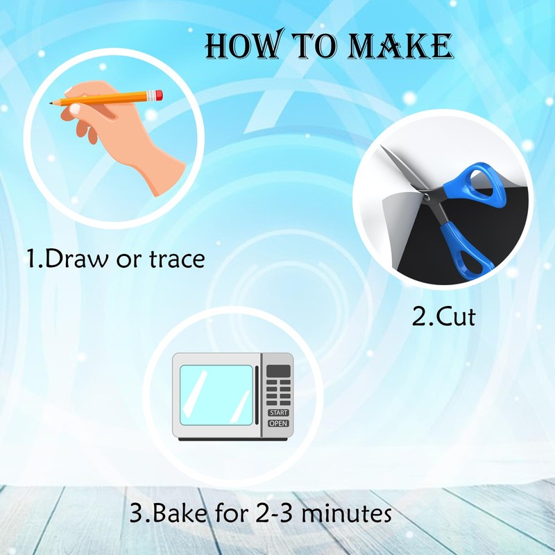 - Easy to Use: Simply draw or trace your desired pattern onto the sheets, cut them out, and bake them in the oven to shrink and harden.(Bake 2-3 minutes at 320 degrees.(The baking time depends on the size of the shrink plastic and needs to be adjusted according to the actual situation)
