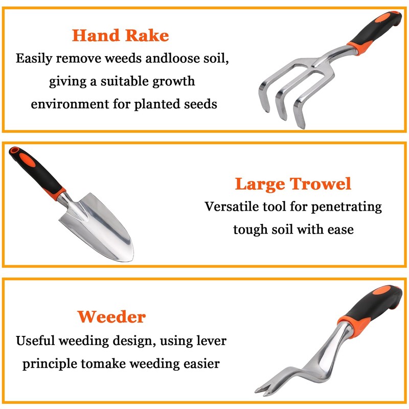 • High-quality Material: Our garden tools set is made of sturdy Aluminium Alloy, the included storage bag is made of Oxford cloth