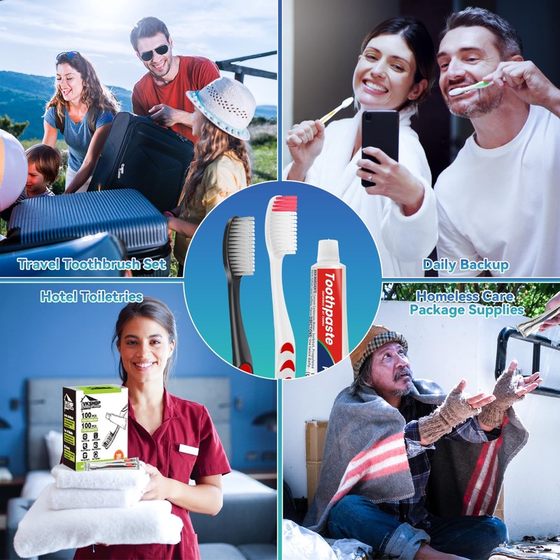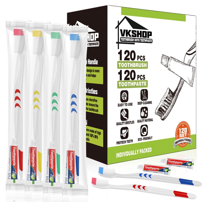- 【Affordable】: Contains disposable individually packaged 120 toothbrushes bluk and 120 toothpaste bulk, a one-time stockpile to meet your long-term emergency needs, the average cost per low, cost-effective far more than a single purchase, is the ideal choice for budget-conscious consumers