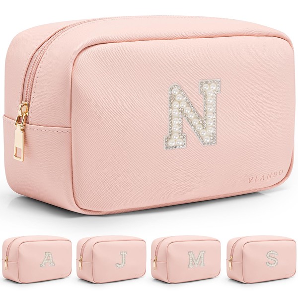 Vlando Gifts for Her Pearl Makeup Bag for Women Gifts for Travelers Skin Care Stuff Bag Birthday Gift Teen Girl Gifts Teacher Gift Makeup Pouch for Purse N, Pink, N