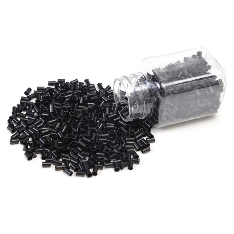 Vlasy 3.4mm Microlink Beads Non-Silicone Copper Tubes Beads Locks Micro Link Ring Tube (1000Pcs, Black)