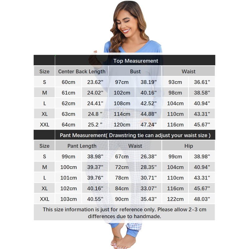 - 【SOFY & COZY FABRIC】Women pyjamas Set made from Top: 95% rayon & 5% Spandex, Pant: 95% Polyester & 5% Spandex, the fabric is soft to the touch, stretch and warm for sleeping or around the house.