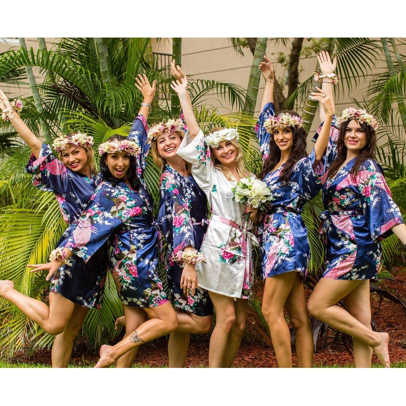 - Women’s Kimono Satin Robes: This silk robe is perfect for bride, bridesmaids and mother of the bride when they are making themselves ready on the morning of the wedding day.